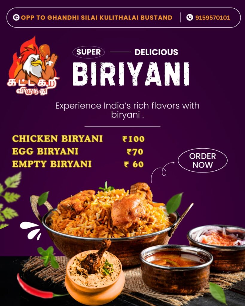 Welcome to Sutta Kari Virunthu! We’re dedicated to perfecting the art of chicken, offering a delectable menu focused exclusively on your favorite fried and Grilled chicken varieties.